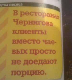 "В ресторанах Чернигова клиенты вместо чаевых не доедают порции"