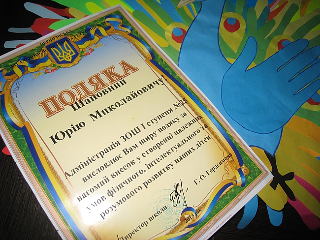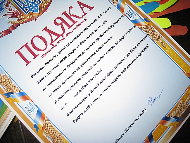 Адміністрація школи та батьківський комітет 4-А класу вручили подяки Голові міського осередку партії «УДАР Віталія Кличка», за створення належних умов для інтелектуального розвитку дітей.