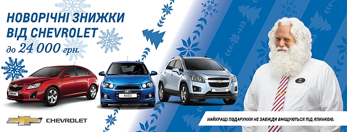 Беспрецедентные новогодние скидки от Chevrolet до 24 200 грн!
