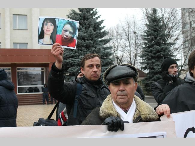 В конце акции, фотографии побитой журналистки передали руководству областного УМВД.