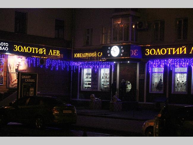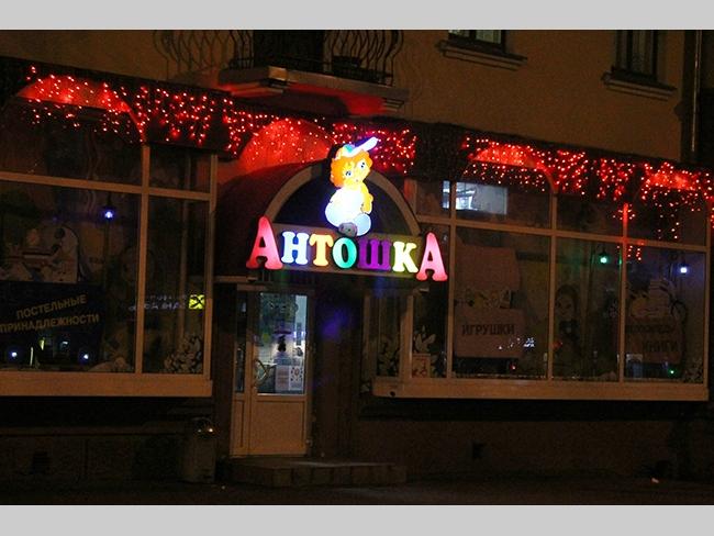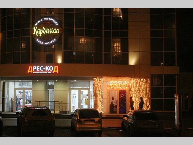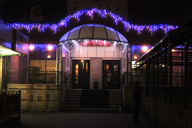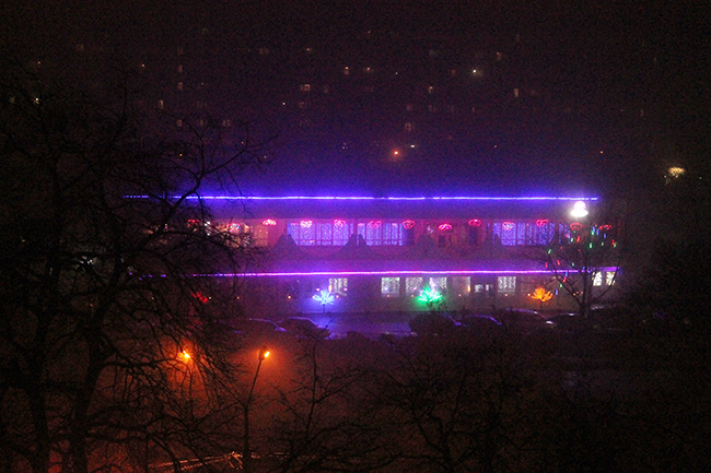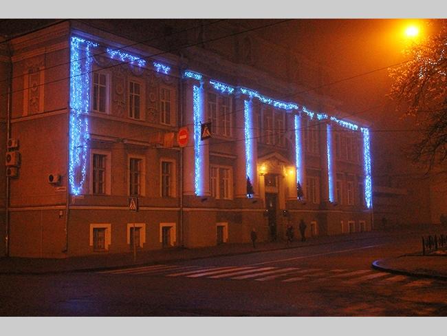 Боулинг-клуб «Светофор» украшен светодиодным дождиком. Кстати, светодиодный дождик — самая популярная иллюминация для торговых и развлекательных учреждений города. Отличается он только цветом и яркостью.