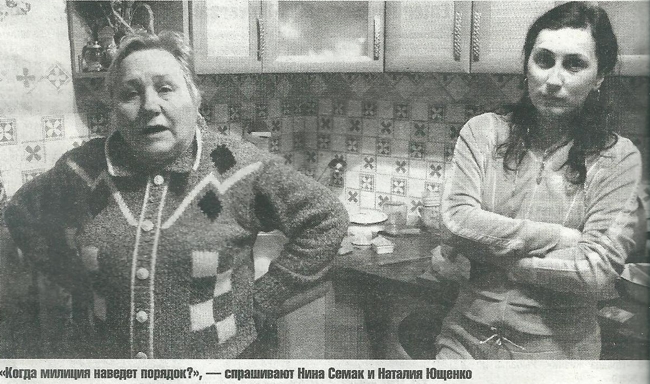 — Меня Курочка схватил за горло, душил. Кричал: «Закрой рот, убью!», — говорит 62-летняя Валентина Морозова. — Я им замечание сделала. В милицию обращалась. Еще мы заявление участковому написали, девять подписей. Нет больше сил терпеть.