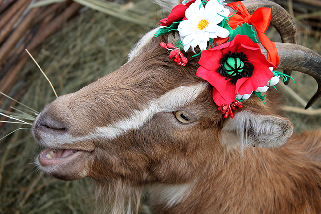 В старые времена на святки был обычай «водить козу» в сопровождении ряженых: «деда», «цыгана», «барыни» и конечно, «козы». Компания ходила по дворам, с песнями и щедровками. Коза в народных обрядах является символом и стимулятором плодородия и богатства, поэтому и в песнях пелось: «Где коза ходит, там жито родит…», «где коза рогом — там жито стогом», «где коза хвостом — там жито кустом». Хозяева щедро угощали и одаривали компанию и все заканчивалось общим весельем.