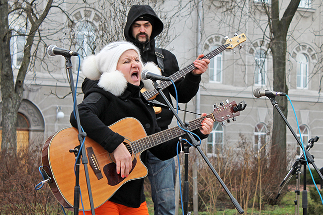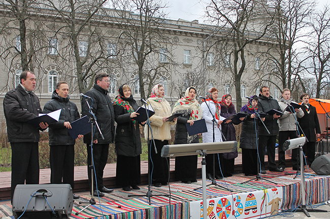 На сцене выступали самые разные коллективы, а открыл фестиваль академический хор им. Д. Бортнянского. Профессиональные певцы не побоялись застудить свой голос в холодную погоду, но надо отдать должное и организаторам, которые обеспечили обогрев сцены.