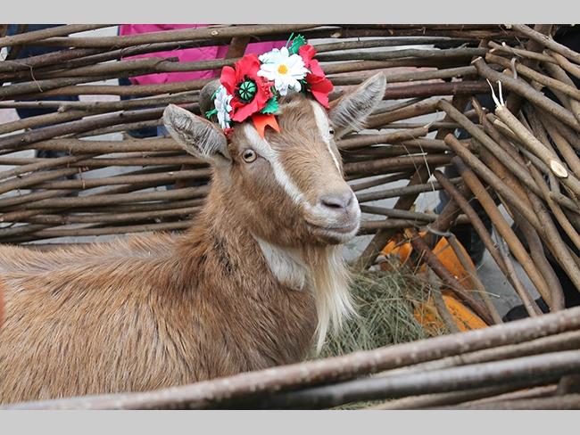 Конечно, чтобы водить козу — нужна сама коза. И она была! Красивая и нарядная, и самая настоящая! Ее можно было кормить и гладить.