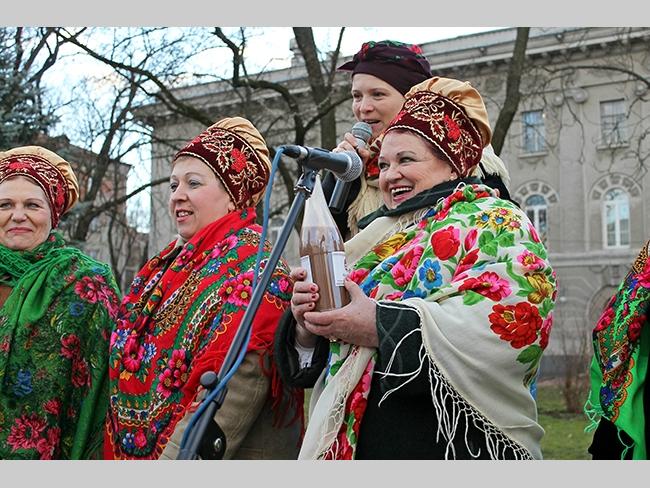 Фольклорный коллектив «Царина» из Киева. Свой репертуар они подбирают в фольклорных экспедициях непосредственно от пожилых людей и стараются подать в аутентичном виде, без обработки.