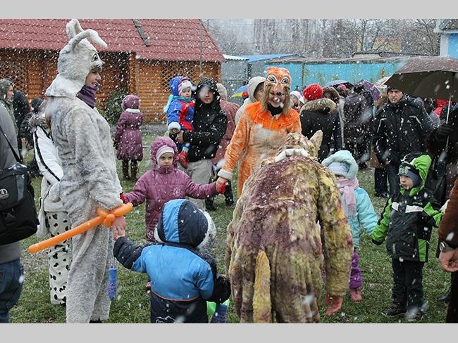 Здесь же развернулась небольшая ярмарка мастеров, на которой дети продавали изделия собственноручного изготовления. На сцене выступали фольклорные коллективы, дети водили праздничный хоровод и катались на пони. Погреться и пропитаться дымком можно было возле горячих бочек.