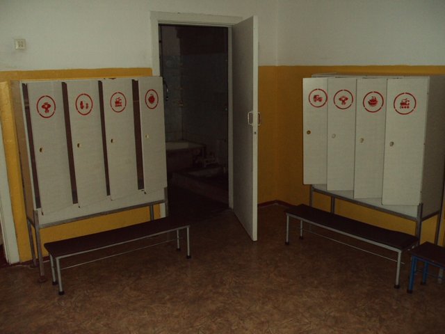 В школе № 19 два спортивных зала – большой и маленький. Оба зала отремонтированы. Во время урока физкультуры, в большом спортивном зале, дети перебрасывали друг другу баскетбольные мячи. Я насчитал порядка 15 баскетбольных мячей. Судя по всему со спортивным инвентарем в школе также все в порядке. Раздевалки школы № 19 не отличаются ничем принципиальным от раздевалок в других школах, однако все же некоторые преимущества у них есть – они более просторные. Кроме того в раздевалках есть специальные ширмы, за которыми можно переодеться.