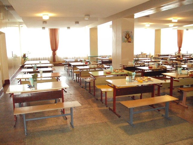В столовой школы № 19 питается 700 человек. Столовая рассчитана на 300 мест. В 2 перемены все успевают покушать. Бесплатно питается 105 человек. На 5-6 гривен каждый может достаточно сытно покушать, Если будет заказывать первое и второе. Перспективное меню ничем не отличается от меню других школ. В столовой постепенно обновляется оборудование. Недавно в рамках городской программы мы получили новую тестомешалку и электромясорубку.