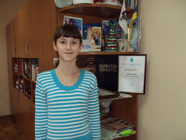 Классный руководитель – Ирина Николаевна Медянцева, социальный педагог. Мой любимый предмет – математика, преподает Маерчик Жанна Анатольевна. Она же и мой любимый учитель. Недостатков в моей школе нет. А преимуществ много. Лично мне очень нравится то, что на уроках учителя используют мультимедийные проекторы. Мы часто смотрим обучающие видео. Учиться так намного интереснее и увлекательнее. Еще мне нравится выпечка в столовой. В среднем в день я трачу на еду 2 гривны. Учителя к нам очень хорошо относятся. В школе постоянно проводят различные предметные конкурсы. Я принимаю участие в конкурсах по английскому языку, математике и украинскому языку. В конкурсах по математике я неоднократно занимала первые места. Я люблю свою школу.