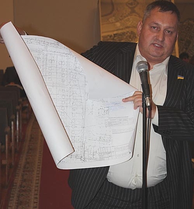 депутат горсовета Олег Мороз знакомит присутствующих с проектом