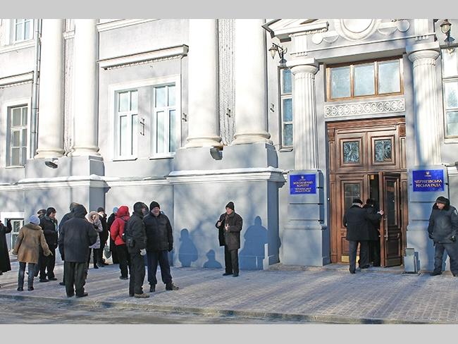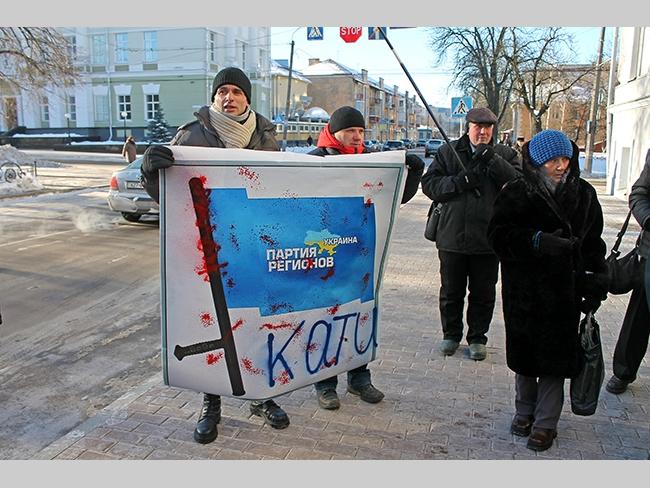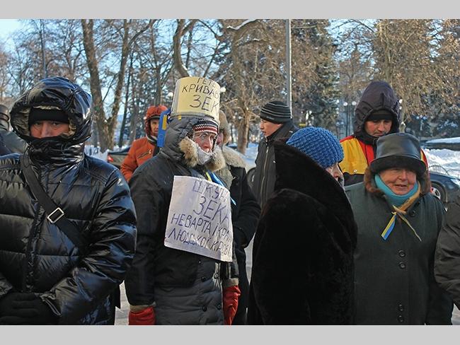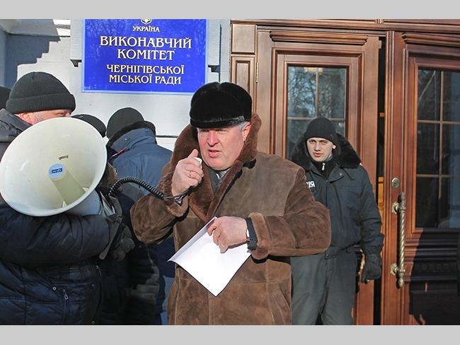 По сложившейся традиции, депутатов спешащих на заседание, встречали перед зданием городского совета митингующие. Видимо морозная погода все-таки внесла свои коррективы в численность протестующих, было их не более 20 человек. Не было традиционного скандирования: «Банду геть», «Ганьба», «Не дамо», и даже небольшая группа молодых людей с черенками от лопат, быстро исчезла куда-то после замечания сделанного им милицией. Депутат Олег Русин зачитал Заявление Черниговского городского совета по общественно-политической ситуации в Украине, и на том митинг завершился.
