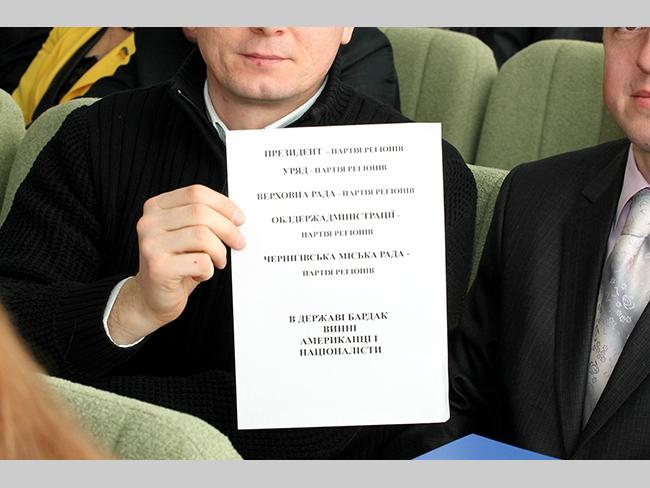 Заявление проголосовали без всяких обсуждений, которые порывался сделать присутствующий в зале активист черниговского майдана Станислав Тавлуй, после чего он со своей немногочисленной командой покинул сессионный зал.