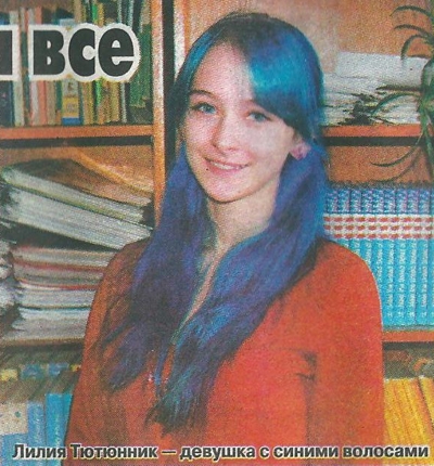 Одиннадцатиклассница щорской гимназии Лилия Тютюнник уже вторую неделю ходит с синими волосами, Они у нее достаточно длинные — ниже плеч.