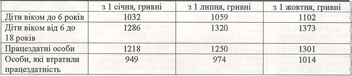 Протягом року показник зростатиме ще двічі. Так, з 1 липня прожитковий мінімум становитиме — 1207 гривень, а з 1 жовтня — 1256 гривень.