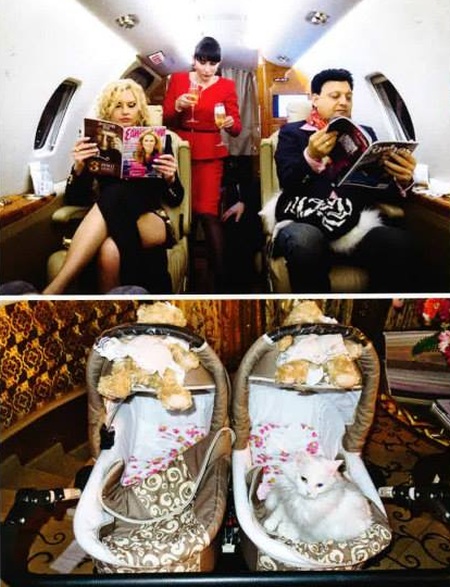 Песик і котик виступили "дублерами" двійнят Арабелли та Мірабелли, позуючи для камер у їхніх візочках. До слова, одного зі своїх цуциків Захур представив інтерв’юєру як Гая Річі. Начальник охорони показав гостеві свого пістолета і розказав, що охороняв самого Бориса Єльцина.