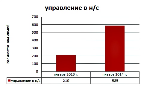 В январе 2014 года по сравнению с январем 2013 года только количество задержанных водителей, управлявших ТС в нетрезвом состоянии в Черниговской области возросло в 2,79 раза – с 210 до 585 человек за месяц!