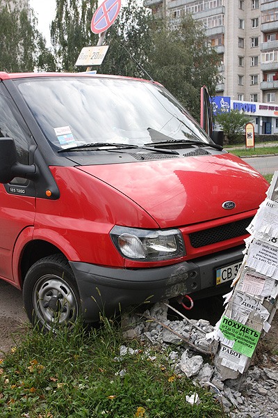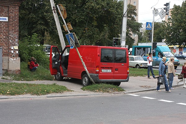 Очередная авария произошла в Чернигове. На этот раз «герои» происшествия городская маршрутка и красный бус марки Ford. Неприятный инцидент произошел на перекрестке улиц Войкова и пр-та Мира. Примерное время 15.45. Через 20 минут на место происшествия прибыла патрульная служба ГАИ. В результате аварии Ford снес столб с прикрепленными дорожными знаками. По предварительным данными никто не пострадал.