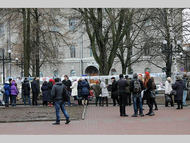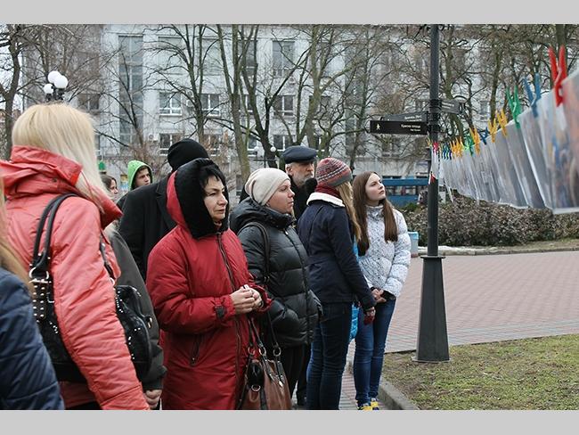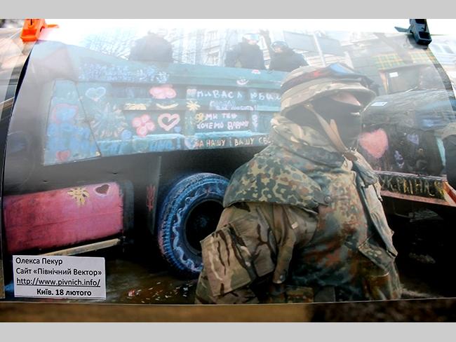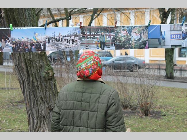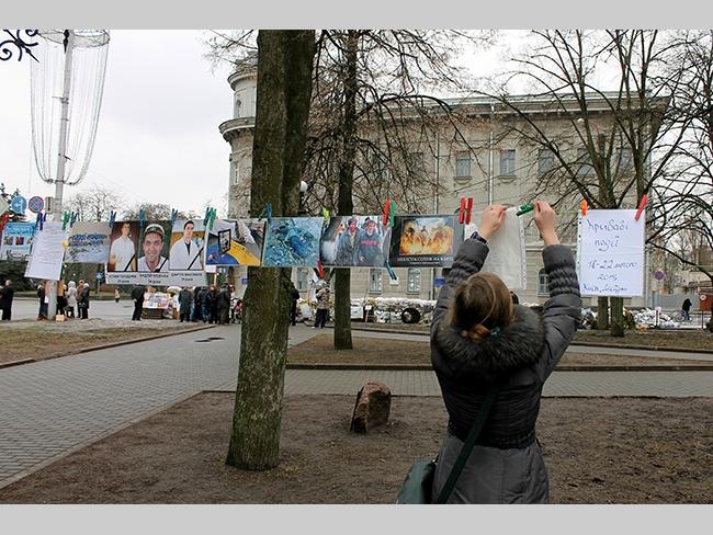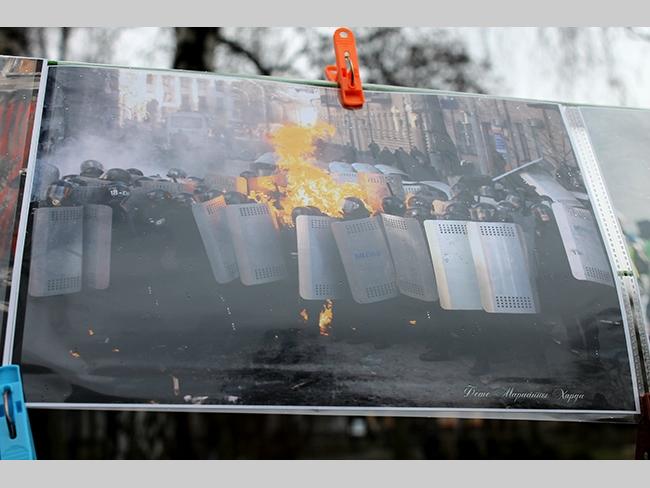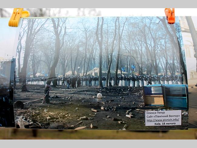 И как в продолжении темы, 23 февраля в сквере им. Н. Н. Попудренко, прошла еще более масштабная выставка фотографий «Майдан там, где ты! Кровавые события февраля». Выставка, организаторами которой являются Медиа Центр «Моє місто» и молодежная команда «Демократического Альянса», также проходила в формате — Фотосушка.