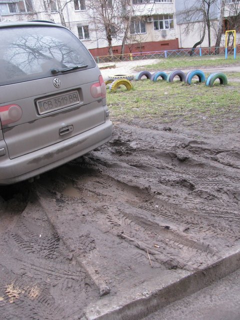Прошу допомоги від активістів, влади, тощо. По вул.Мстиславській, у дворі багатоповерхівки на зеленій зоні дитячого майданчика водій авто Фольксваген паркує свою машину. Я подала письмову заяву до ДАЇ та міліції, минуло 2 місяці жодного руху. Де знайти правду і виконання законів в нашому місті? Додаю фото від 23.02.14.