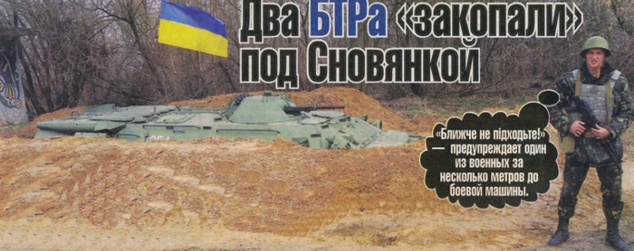 19 марта макушки БТРов-80 торчали из земли на обочине вдоль черниговской трассы, не доезжая моста через Снов, у села Сновянки. Рядом с машинами двое молодых военных с автоматами.