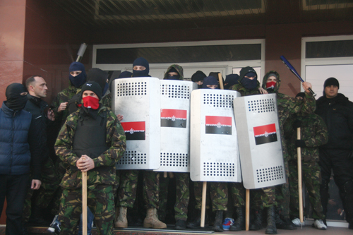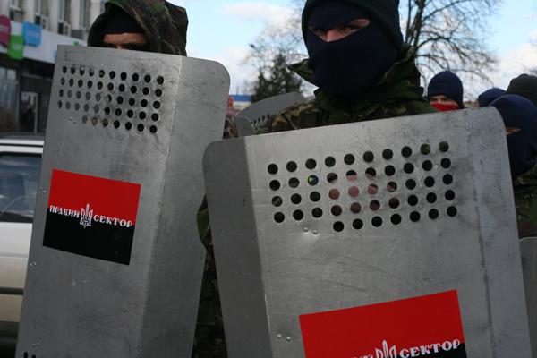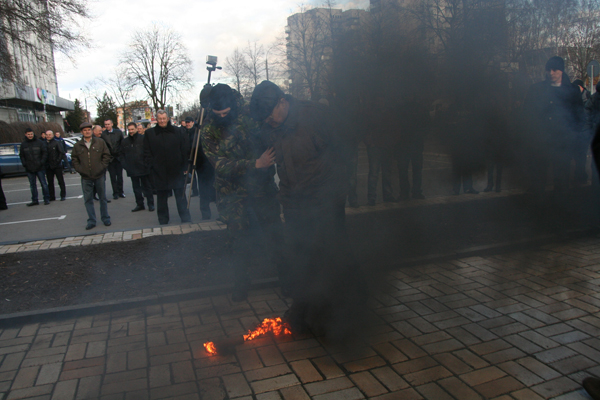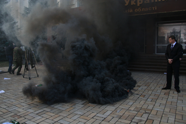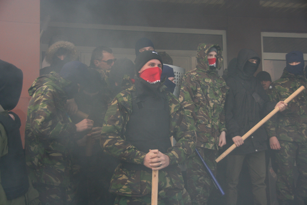 20 марта, как и было заявлено активистами вчера, представители Правого сектора пришли выразить свой протест под стены управления МВД области. Несколько десятков молодых людей в камуфляже и масках требовали убрать с поста новозначенного Олега Демченко.