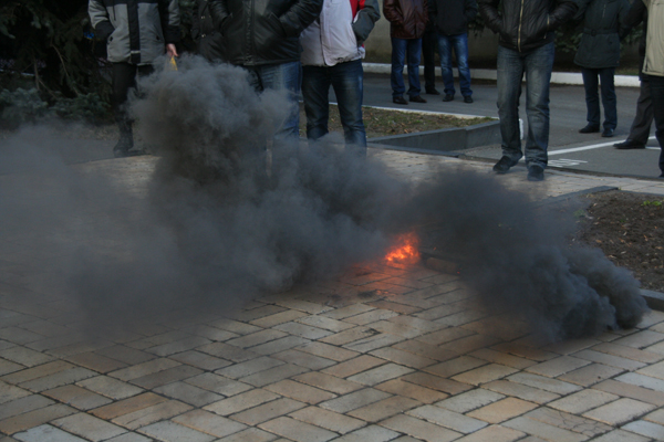 Антуражем пикета послужили резиновые покрышки, «коктейли Молотова», дымовые шашки и плакаты с различными лозунгами.