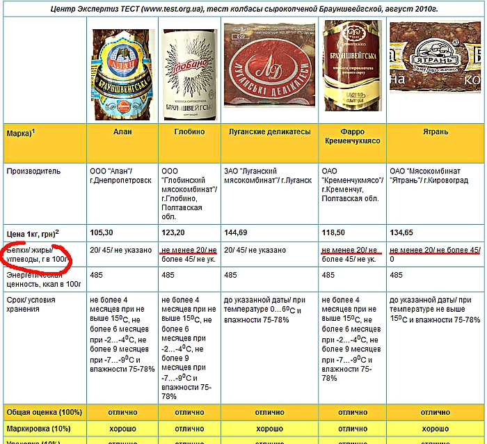 В результате поиска мы нашли тестирование качества колбас Центром экспертиз «Тест». Эта авторитетная организация проводила тест еще в 2010 году. И, что самое главное, в тесте как раз и идет речь о маркировке колбасных изделий! Неужели в Инспекции по защите прав потребителей не владеют такой информацией?