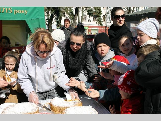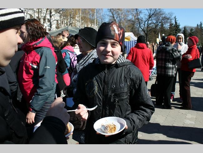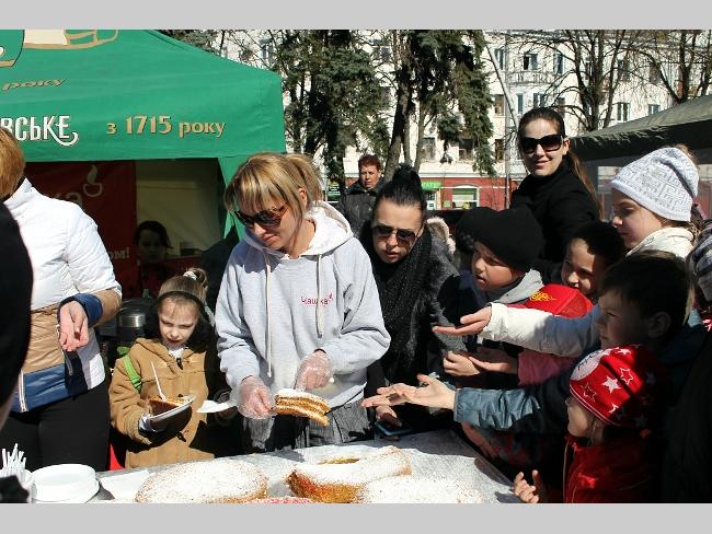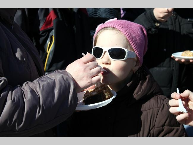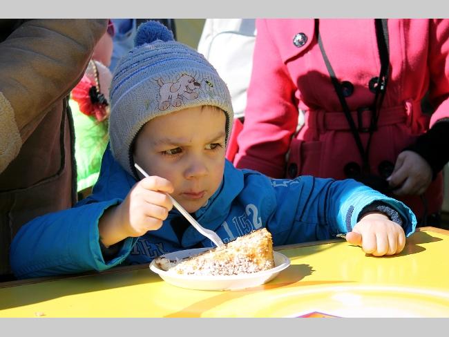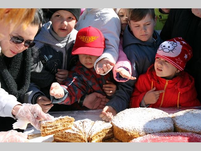 А сюрпризом праздника стал огромный медовик приготовленный кулинарами кафе «Чашка». Угоститься кулинарным шедевром могли все желающие.