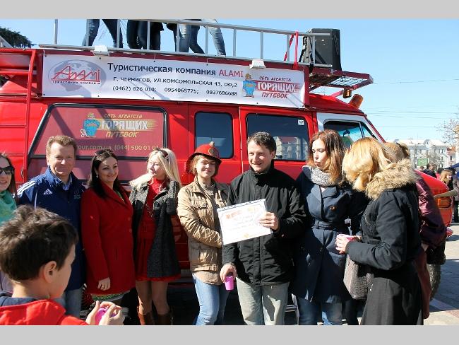 Чтобы сделать праздник приятным и радостным, туристическое агентство «Алами», разыграло туристическую путевку по странам Европы. Участниками розыгрыша могли стать все желающие, достаточно было только заполнить специальную анкету. Счастливым обладателем заветной путевки стал известный черниговский шоумен Андрей Соколов.