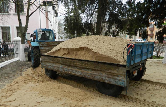 Жители пятиэтажки по улице Шевченко, 22 что в районе Красного моста, сегодня проснулись от шума тракторов, которые почему-то отгружали песок прямо под окнами их квартир.