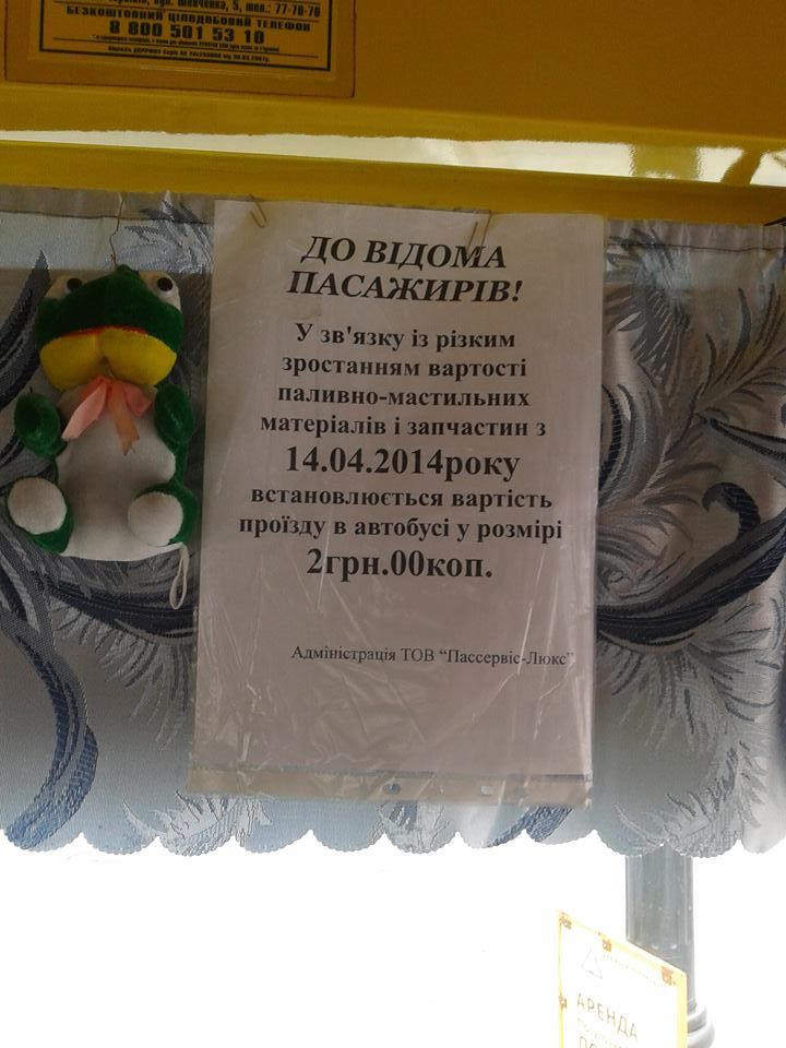 За сприяння виконкому Чернігівської міської ради з 7 квітня автобуси міських маршрутів № 20 і 37 підняли проїзд до 2 грн. Підстава – зміна режиму руху зі звичайного на «маршрутне таксі». А вже з понеділка 14 квітня на автобусах надприбуткового маршруту №12 з’явились оголошення про підвищення проїзду до 2 грн.