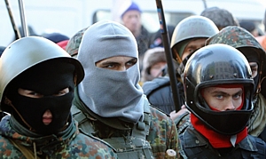 Біля в'їзду на територію, де тренується «Правий сектор», шлагбаум. Солдат піднімає його. Не запитує, куди їдемо.
