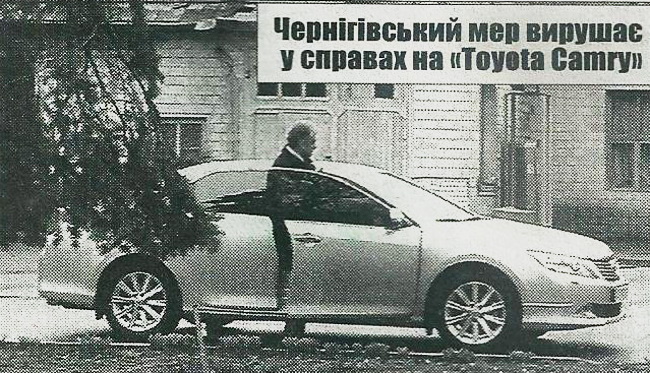 По закінченню заходу міський голова вийшов на задній двір облдержадміністрації і сів в автомобіль «Toyota Саmrу ».
