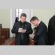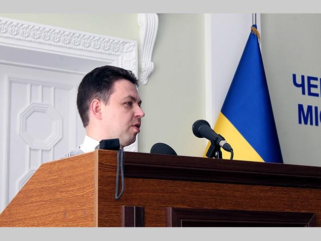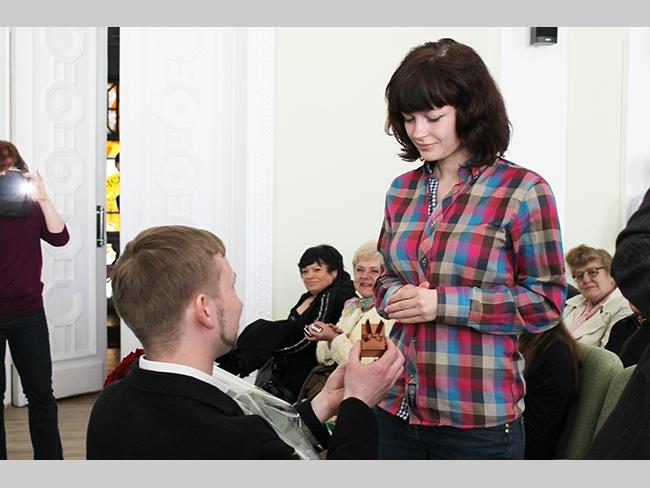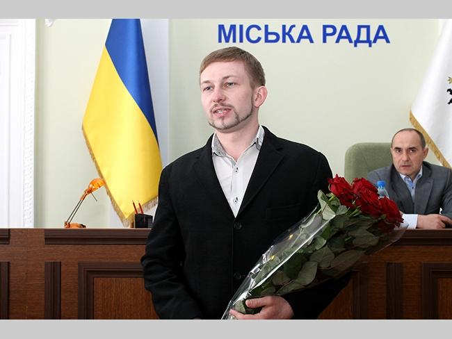 После того, как депутаты заполнили сессионный зал, а городской глава Александр Соколов еще не объявил об открытии сессии городского совета, слово попросил молодой черниговский политолог Александр Рысь. Он вышел с огромным букетом роз, и под аплодисменты присутствующих сделал предложение руки и сердца присутствующей в зале журналистке Ольге Ризенко.
