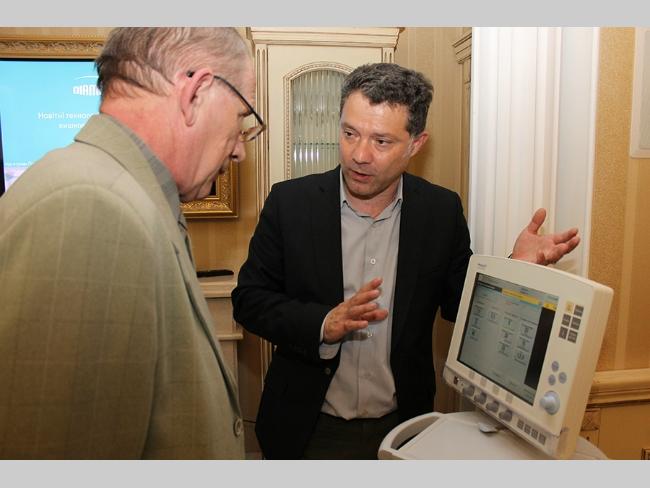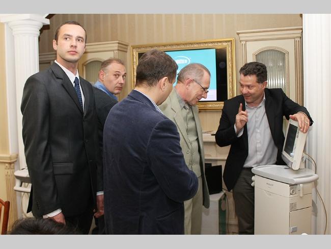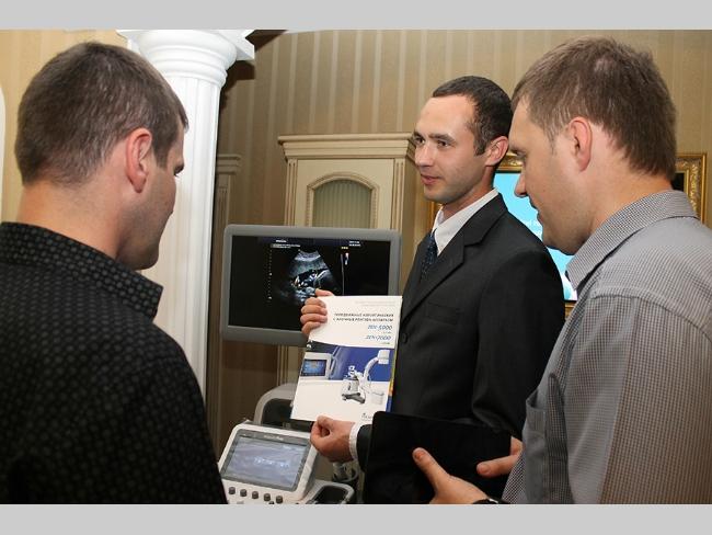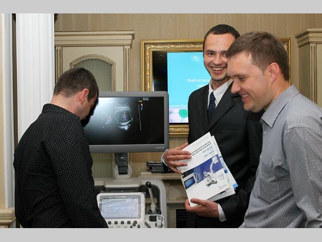 – На виставці ми презентуємо найсучасніші апарати ультразвукової діагностики та штучної вентиляції легенів, комплектуючі до них, а також реактиви для лабораторій, – зазначив В’ячеслав Щербак. – Щоправда, представили лише кілька зразків техніки, бо семінар відбувається у невеликому за розміром приміщенні. А взагалі можемо забезпечити медичні заклади усім потрібним: хімічними розчинами, меблями й усілякою апаратурою від провідних виробників. І ціни у нас доступні.