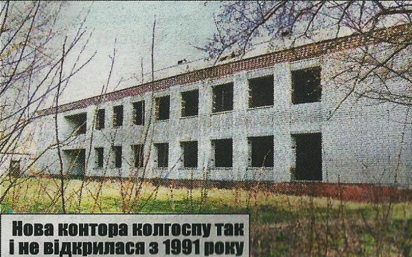 Чи не в останні дні «життя» радянської влади, про кінець якої тоді мало хто здогадувався, правління колгоспу та сільрада планували переїхати у нову двоповерхову будівлю, яка була вже майже збудована. Серпень 91 -го зірвав плани: двоповерхівка простоює й нині. її вікна прогнили, а дах починає сипатися. За словами селян, стіни не роздерті на цеглу лише тому, що будували тоді якісно й розібрати не просто.
