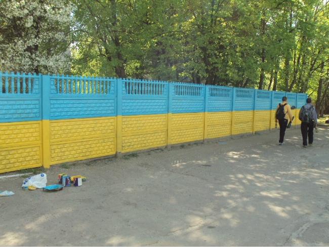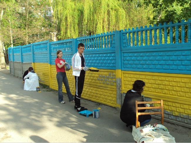 Активная черниговская молодежь продолжает перекрашивать тусклые и серые городские заборы в желто-синие цвета. На этот раз молодые люди решили перекрасить забор возле детской поликлиники № 2 по адресу ул. Рокоссовского, 47. Результат работы общественных активистов очень порадовал прохожих. Основная часть людей, проходящих мимо желто-синего забора, хвалили ребят и разделяли их патриотические настроения.