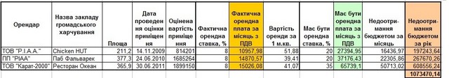 Як бачимо, більше мільйона за рік недоотримує обласний бюджет через такі «промахи» з боку орендодавця.