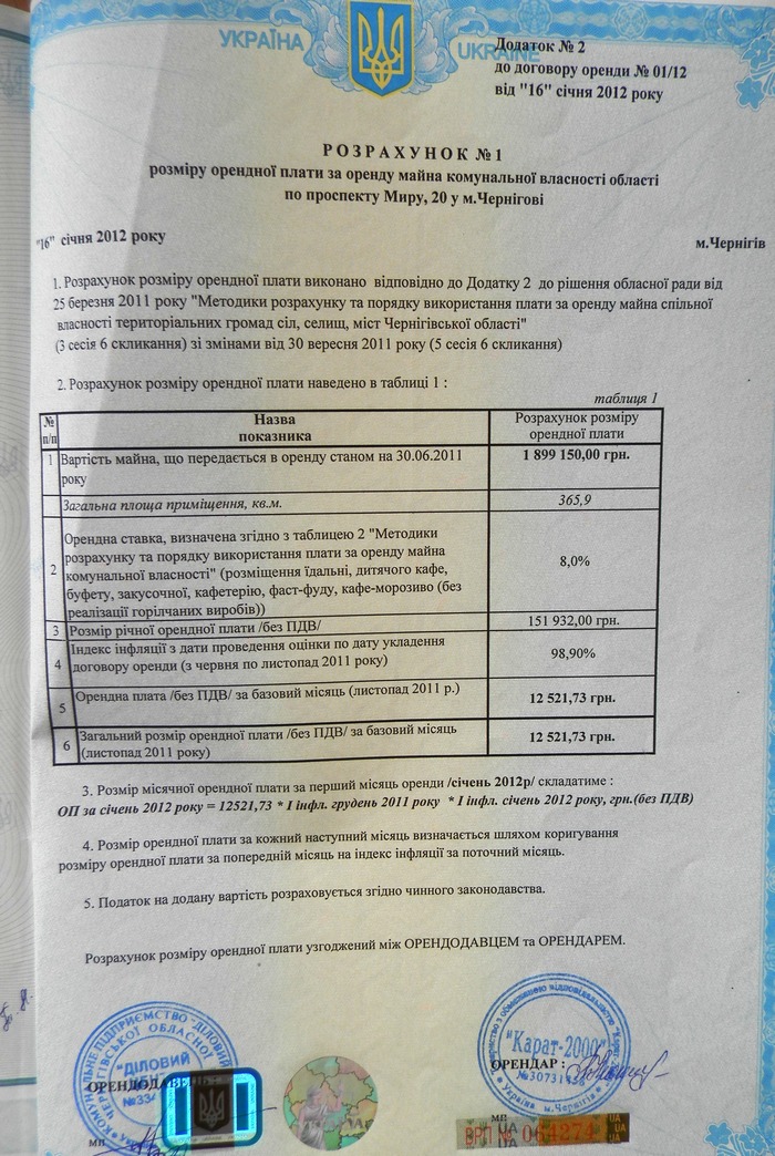 Заклади громадського харчування в центрі Чернігова, що знаходяться за адресою Проспект Миру, 20 орендують комунальне майно, яке належить громаді міста за пільговою орендною ставкою та всупереч затвердженій методиці. Орендодавець приміщення – КП «Діловий центр» Чернігівської обласної ради.