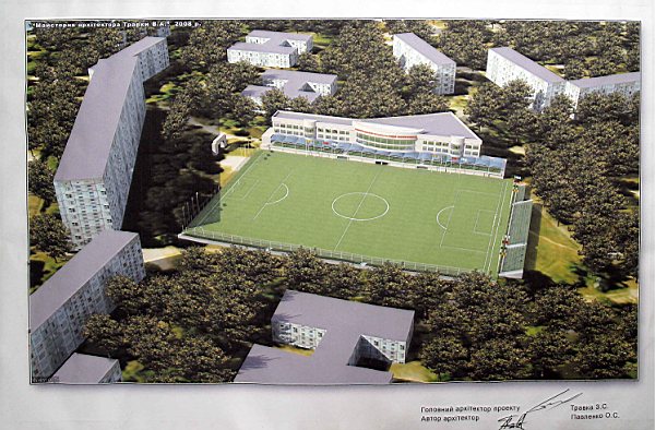 Ориентировочно в апреле на этом месте могут начаться строительные работы. На месте гаражей будет возведен спортивный комплекс, в котором на цокольном этаже планируется зал для тяжелой атлетики, а на двух этажах – фитнес-центр, сауна и спортивные залы. Само футбольное поле будет длиной в 107 и шириной в 70 метров. На нем будут расположены трибуны с 2000 мест для зрителей. Строительство планируется завершить за два года.