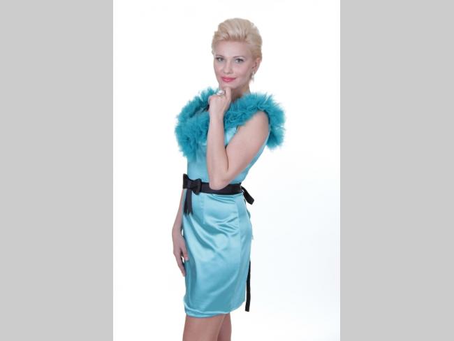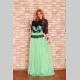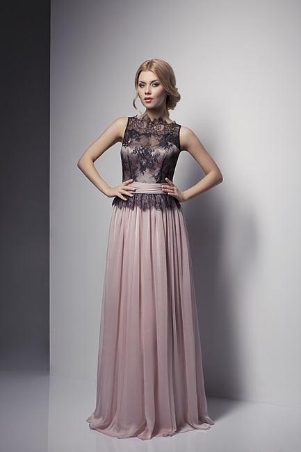 Следующее платье также в пастельном оттенке, но в верхней части есть отделка черным кружевом (кстати, кружево опять тренд сезона!), которое очень контрастирует с нежным розовым цветом. Платье яркого дизайна и оно прекрасно подойдет для девушек с контрастным типом внешности, светлые и нежные блондинки просто потеряются на фоне такого контраста (тем более он находится в верхней части платья). Если вы все-таки влюбились в него, позаботьтесь о макияже, выберите оттенки ярче обычного, что бы платье не затмило вашу красоту, а наоборот подчеркнуло её!