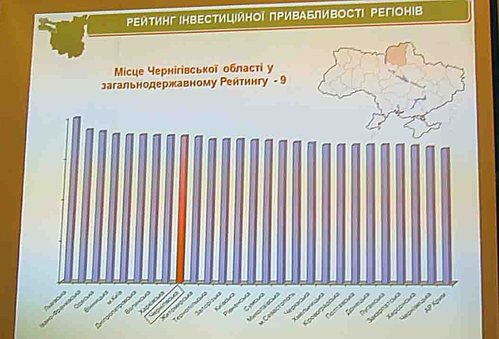 Черниговщина в этом рейтинге заняла 9-е место (в рейтинге за предыдущий год – 21-е место). Опрошенные предприниматели и чиновники высоко оценили деловой оптимизм, административные процедуры и деловой климат в области. Тем не менее ситуация с коррупцией в области ухудшилась на целых 13(!) пунктов.