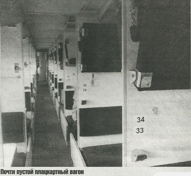 Плацкарт стоит 680 гривен. Купе — 1200. Раньше ездило намного больше людей. Процентов на 75. Сейчас заполнены меньше двух вагонов. К тому же пустили маршрутку до Москвы. Она вдвое дешевле.