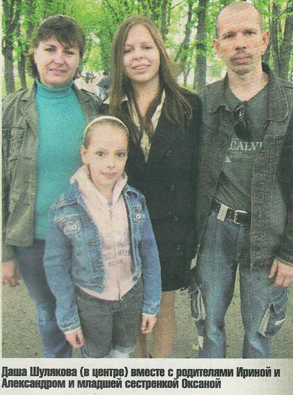 В семье Александра и Ирины Шуляковых, кроме Даши, еще четверо детей: 23-летняя Мария, 21-летняя Наталья, 10-летняя Оксана и 7-летний Максим. Все учатся или учились в школе №1.