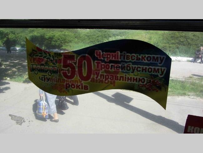 Сегодня в Чернигове транспортное средство, занимающееся пассажироперевозками, стекла которого не оклеены рекламной продукцией – редкость. Причем стекла начали оклеивать рекламой, распечатанной на обыкновенной бумаге. Так что нельзя сказать, что она дает возможность беспрепятственного обзора из салона транспортного средства. Кроме частных перевозчиков размещением незаконной рекламы страдает и руководство коммунального предприятия КП «ЧТУ».