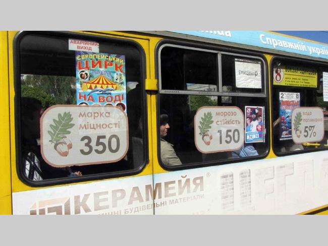 «На автобусах, рухомому складі міського електричного транспорту (крім вагонів метрополітену) розміщення зовнішньої реклами дозволяється виключно вздовж бокових бортів транспортних засобів без розміщення реклами на скляних (прозорих) поверхнях».