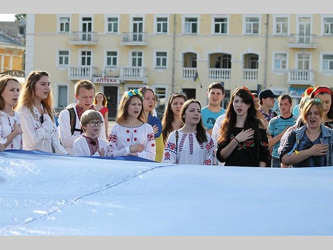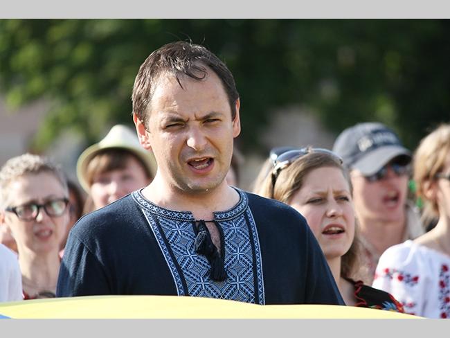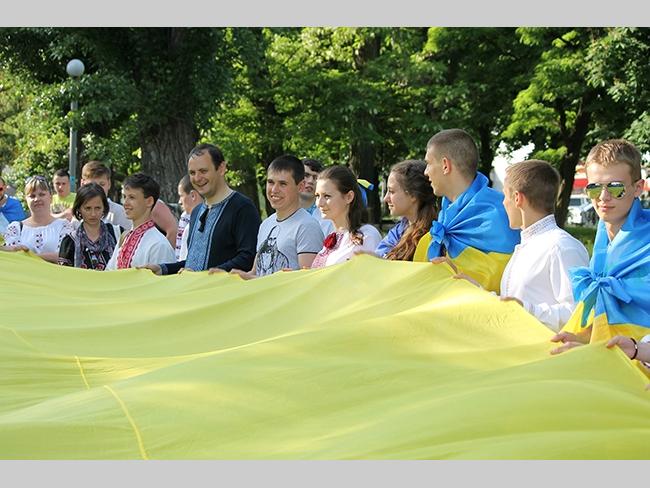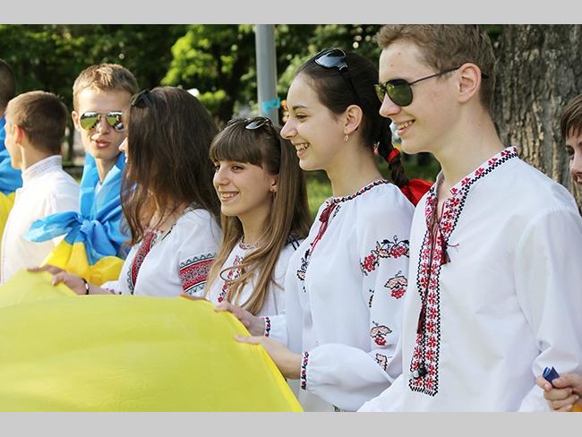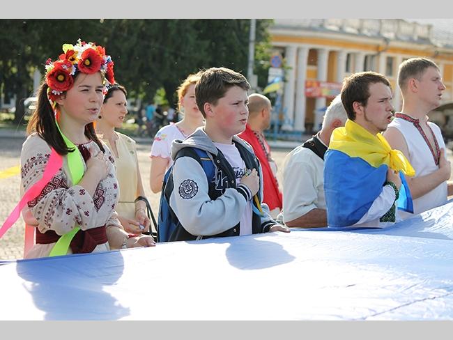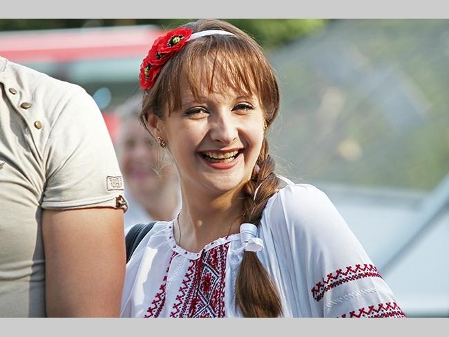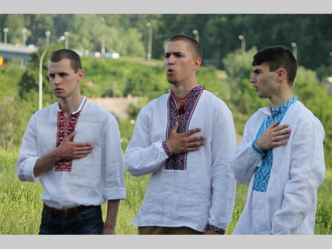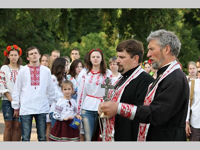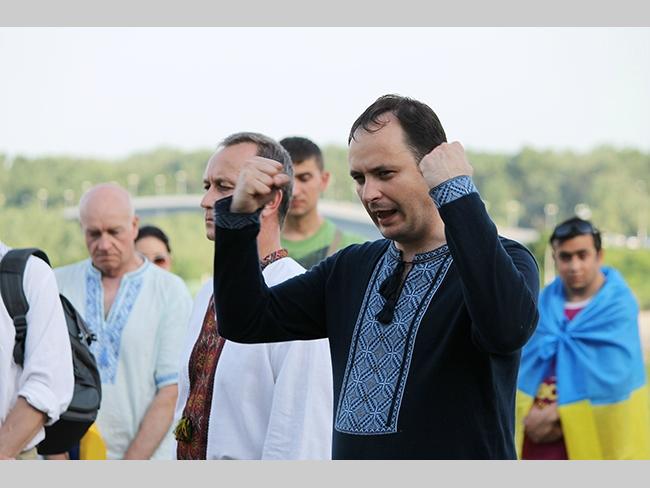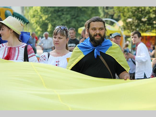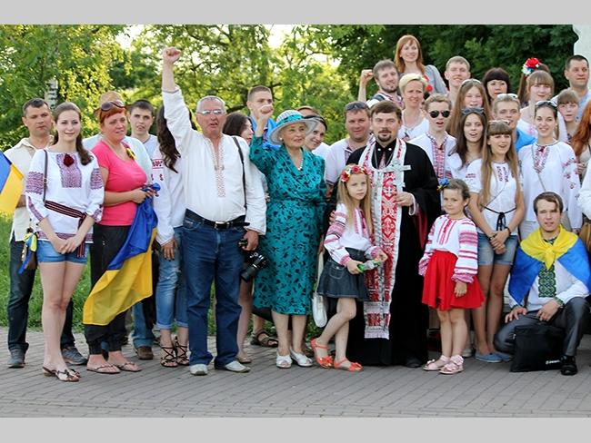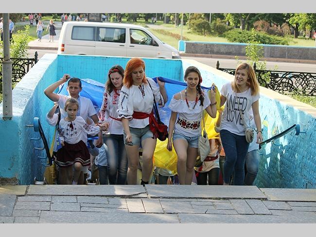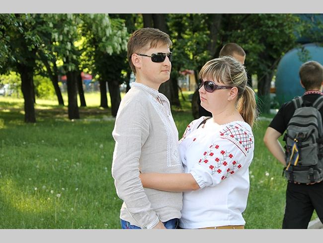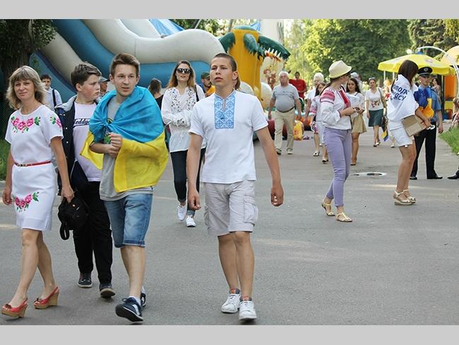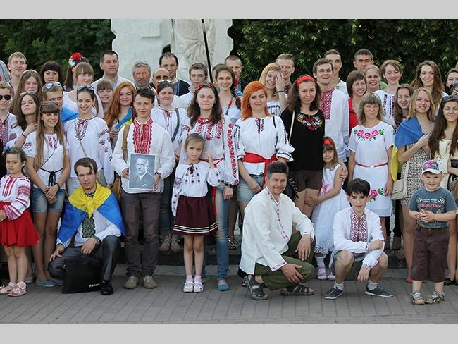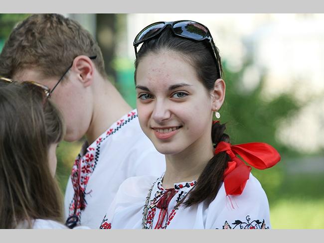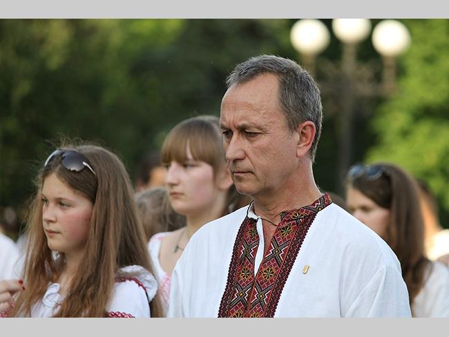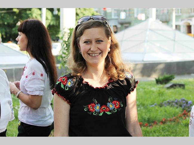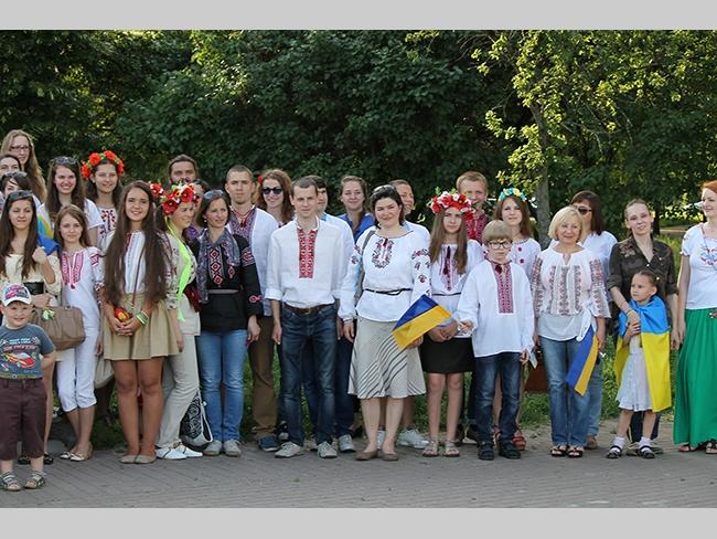 Около полусотни молодых юношей и девушек, в национальных вышиванках, которые одна другой краше, собрались в парке, напротив «Мегацентра». Развернув огромный национальный флаг Украины, участники марша двинулись центральной улицей города к Екатерининской церкви. В марше принял участие и депутат Верховного Совета Украины от Всеукраинского объединения «Свобода» — Руслан Марцинкив.