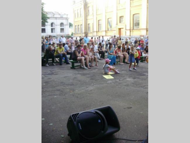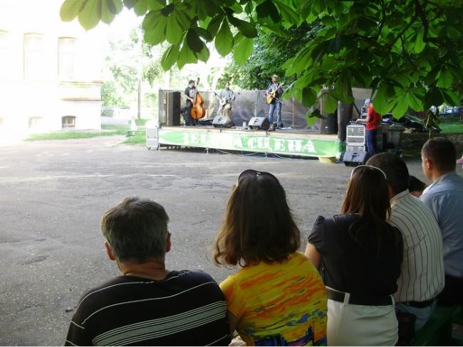 І хоча передвиборча катавасії вимусила Зелену сцену переїхати зі звичного місця на алеї героїв на майданчик перед художнім музеєм, здається, це тільки пішло на користь. Тут, під спокійними кронами каштанів, у тиші Валу, і відбулася вчора, 23 травня, друга цього року Зелена сцена.