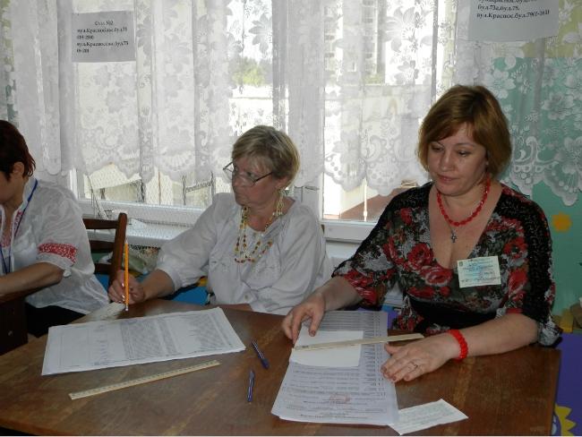 - Голосування у нас проходить досить спокійно Щоправда один з виборців звернувся з зауваженнями, стосовно відсутності штампів «вибув» у виборчих бюлетенях. Але ми передзвонили в окружну комісію, і нас запевнили, що ніяких штампів не повинно бути. Голосування почалася вчасно, зранку було досить багато людей. У нас присутні спостерігачі від трьох кандидатів: від Порошенка, Тимошенко і Тягнибока. Люди голосували активніше зранку. Станом на 12.00 на ДВК проголосувало 30 %, а на 15.00 - 42 % виборців.